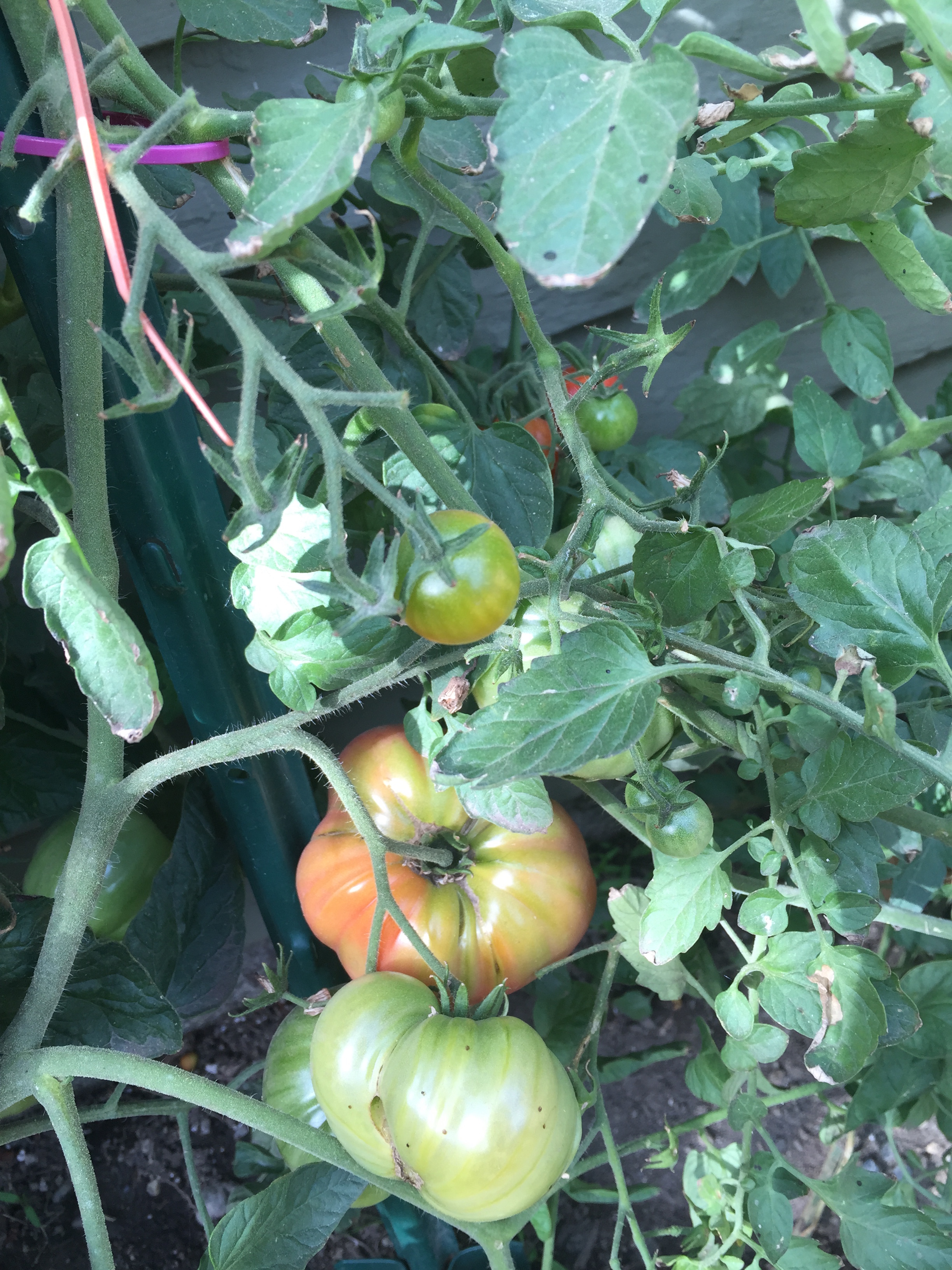 I’m not complaining about the cucumbers, but my hubby might be getting sick of this salad. Because I have tomatoes coming out my ears too. Here’s an Amish variety, and a cherry variety. Both heirloom. Both rouge wild.