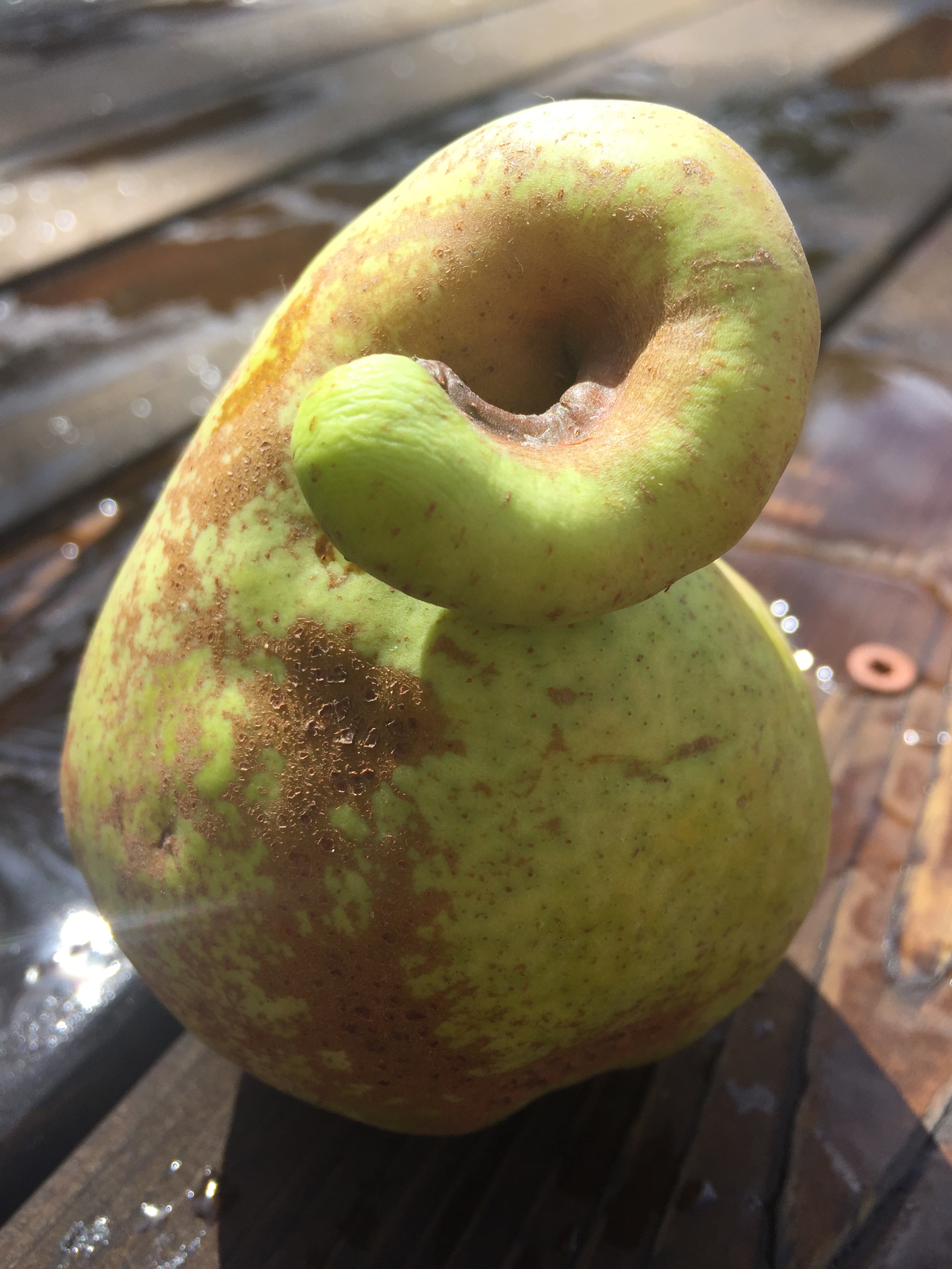 Let me bring you back to the pear, since this is what started it all. When I looked at that funny pear, I never wondered at what point it stopped being a pear. I never doubted it was a pear. I never thought of throwing it away because it wasn’t worthy to be a pear. IMG_4887