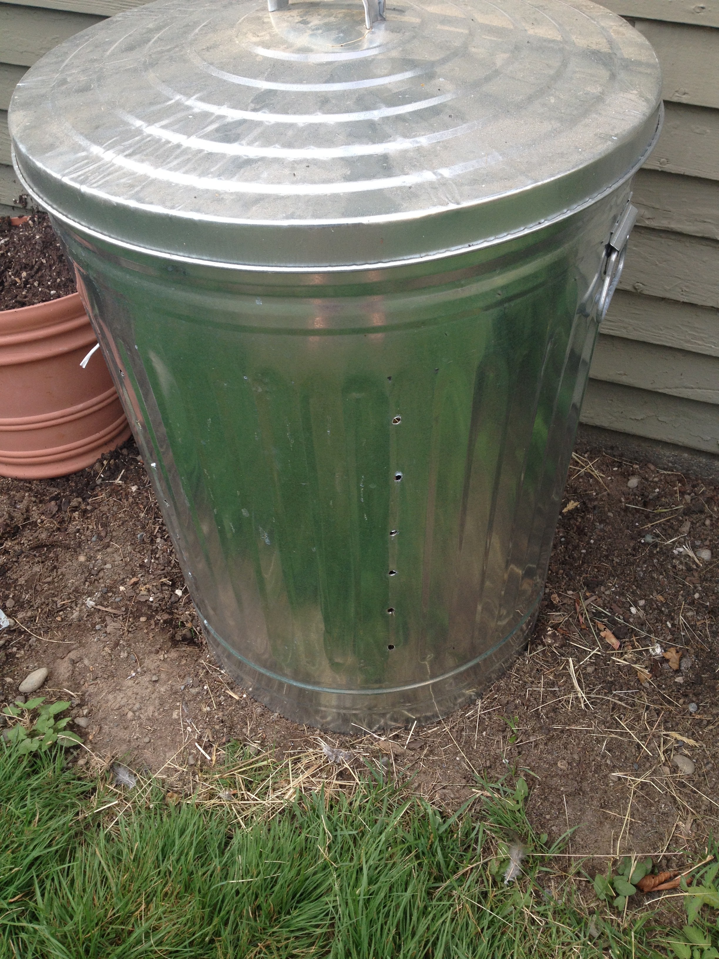 - Find a nice sunny spot to keep the compost can (preferably onto of dirt so worms or other bugs can crawl into it).